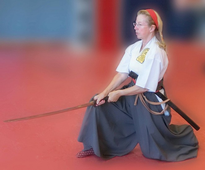 Christine Rauscher, 7.Dan Iaido, Kyoshi hat vor ca. 30 Jahren mit dem Schwerttraining angefangen.